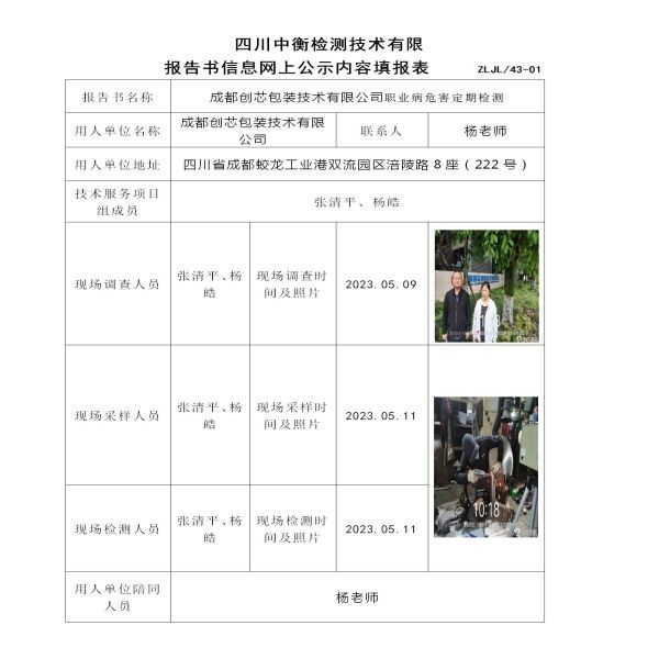 成都創(chuàng)芯包裝技術(shù)有限公司職業(yè)病危害定期檢測