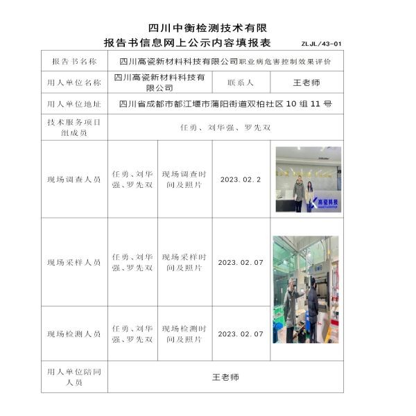 四川高瓷新材料科技有限公司控制效果評價