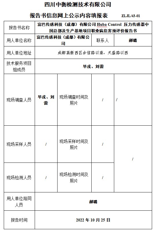 富巴傳感科技(成都)有限公司預評價