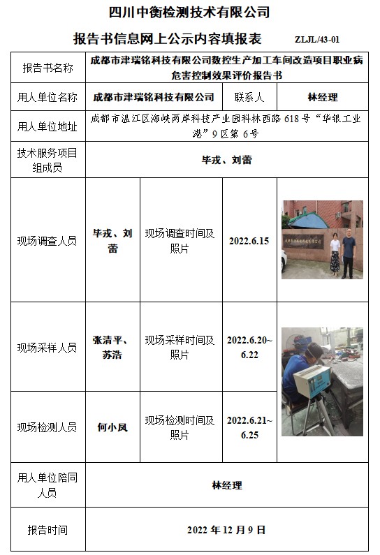 成都市津瑞銘科技有限公司控制效果評價
