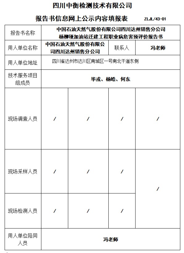 中國石油天然氣股份有限公司四川達州銷售分公司 楊柳埡加油站遷建工程預評價