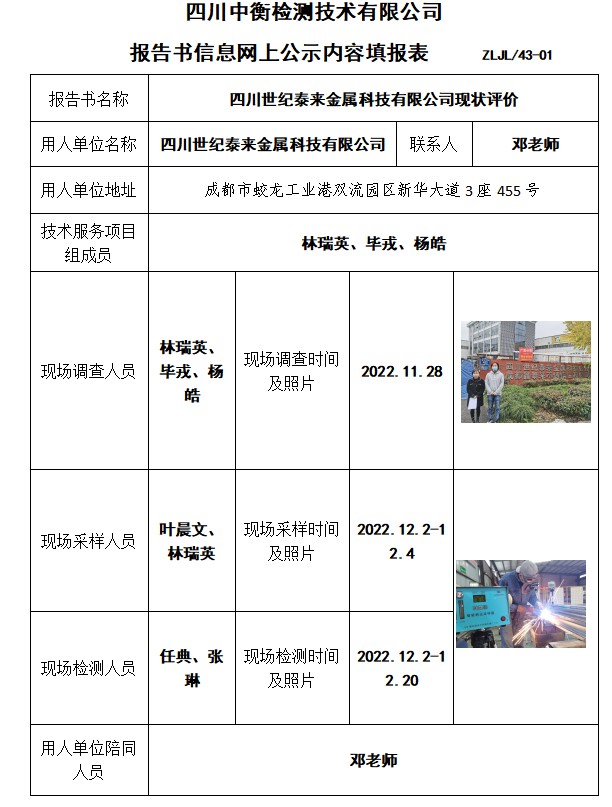四川世紀(jì)泰來金屬科技有限公司現(xiàn)狀評(píng)價(jià)