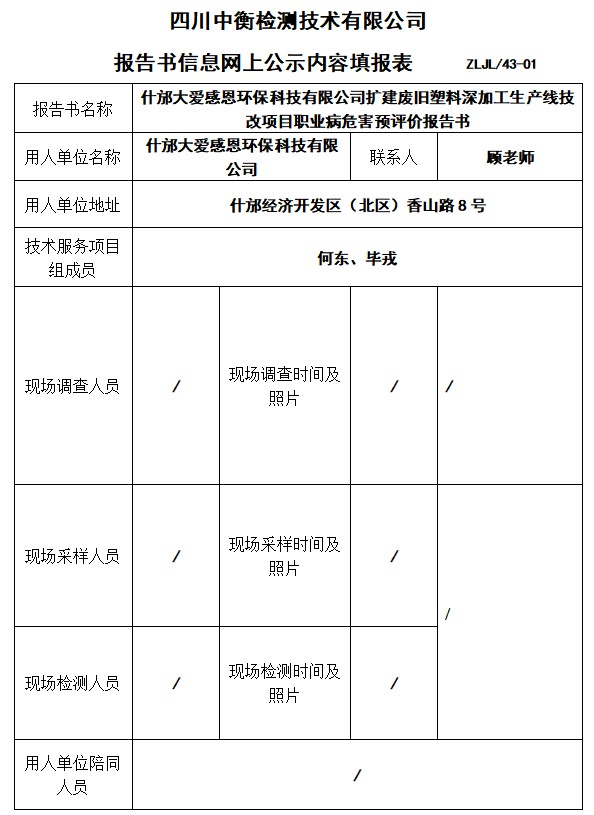 什邡大愛感恩環保科技有限公司擴建廢舊塑料深加工生產線技改項目預評價