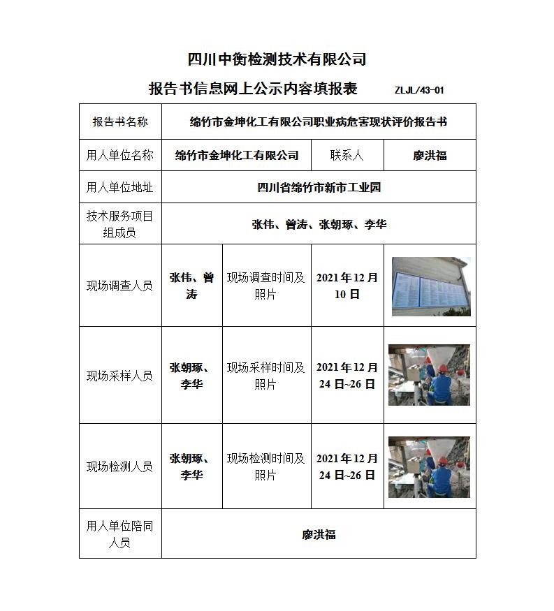 綿竹市金坤化工有限公司職業病危害現狀評價