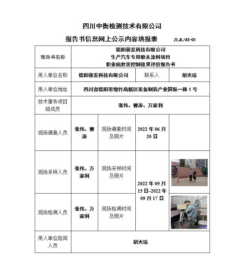 德陽蓉發(fā)科技有限公司生產汽車專用粉末涂料項目職業(yè)病危害控制效果評價