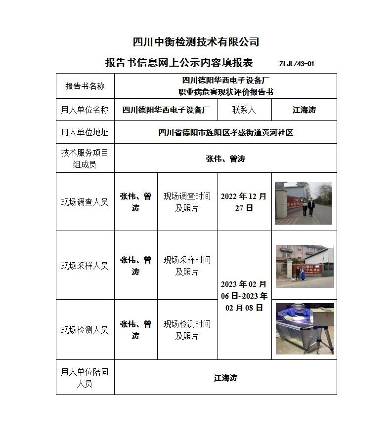 四川德陽華西電子設備廠 職業病危害現狀評價