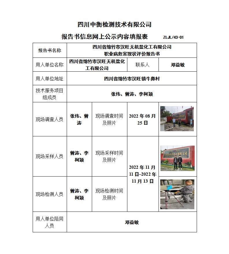 四川省綿竹市漢旺無(wú)機(jī)鹽化工有限公司 職業(yè)病危害現(xiàn)狀評(píng)價(jià)