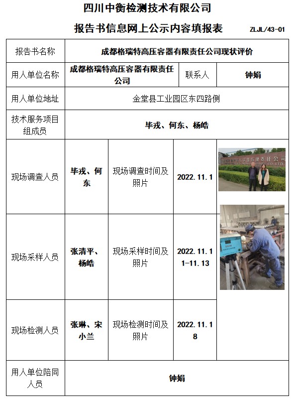 成都格瑞特高壓容器有限責任公司現狀評價