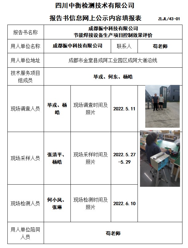成都振中科技有限公司 節能焊接設備生產項目控制效果評價