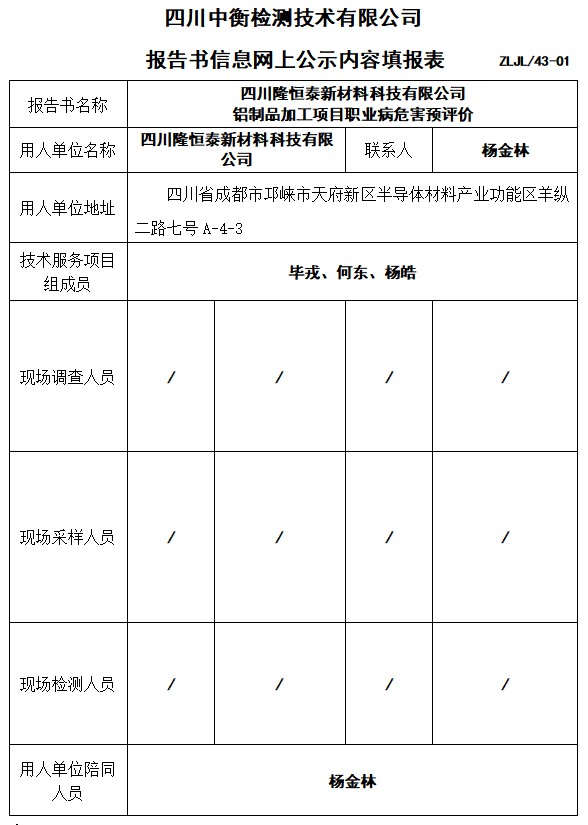 四川隆恒泰新材料科技有限公司 鋁制品加工項目預評價
