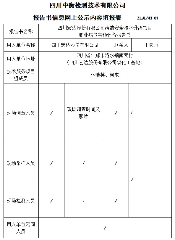 四川宏達股份有限公司清潔安全技術升級項目預評價