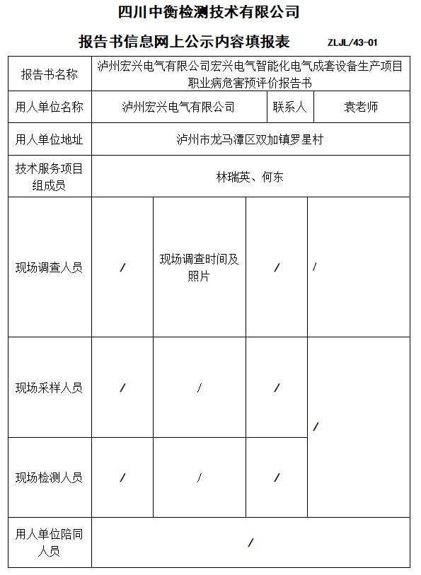 瀘州宏興電氣有限公司宏興電氣智能化電氣成套設(shè)備生產(chǎn)項(xiàng)目預(yù)評(píng)價(jià)