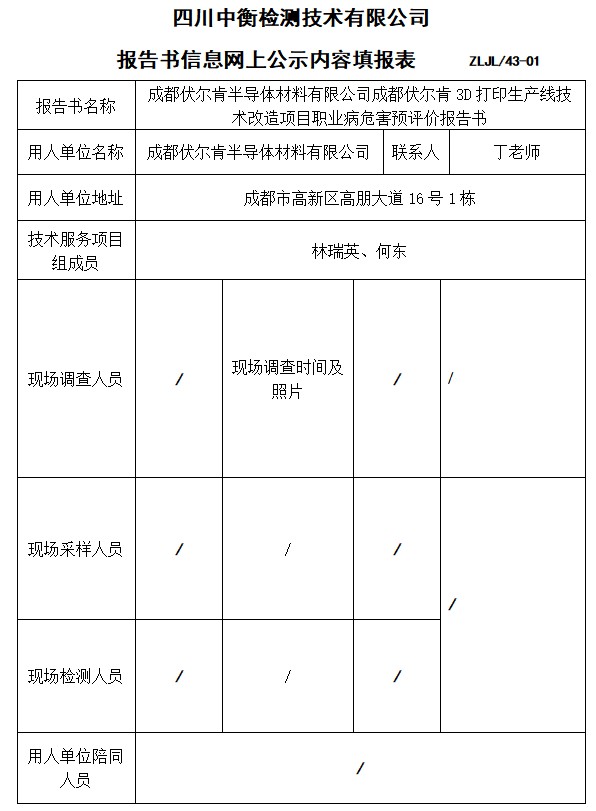 成都伏爾肯半導體材料有限公司成都伏爾肯3D打印生產線技術改造項目預評價