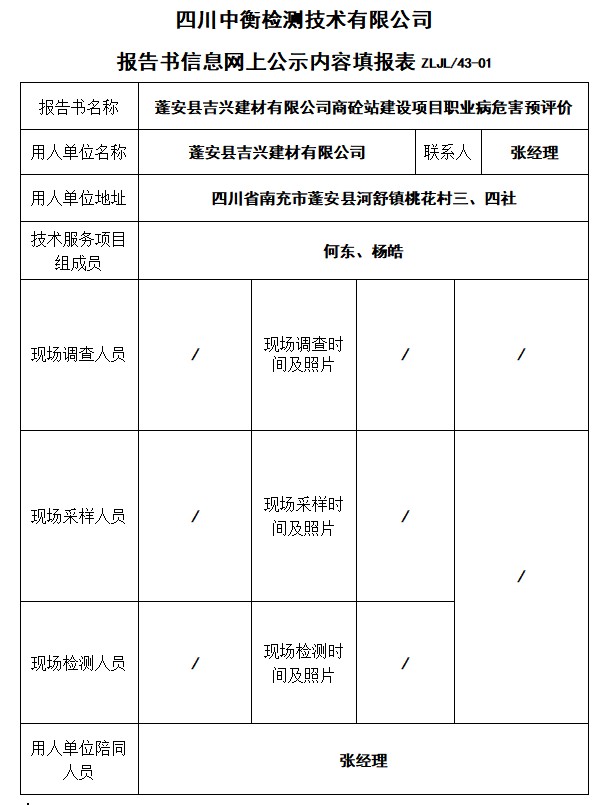 蓬安縣吉興建材有限公司商砼站建設項目預評價