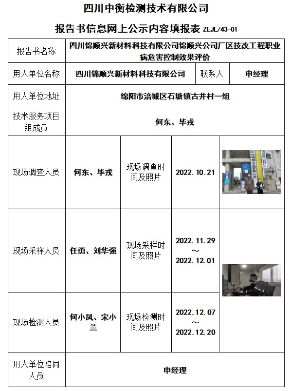 四川錦順興新材料科技有限公司錦順興公司廠區技改工程控制效果評價