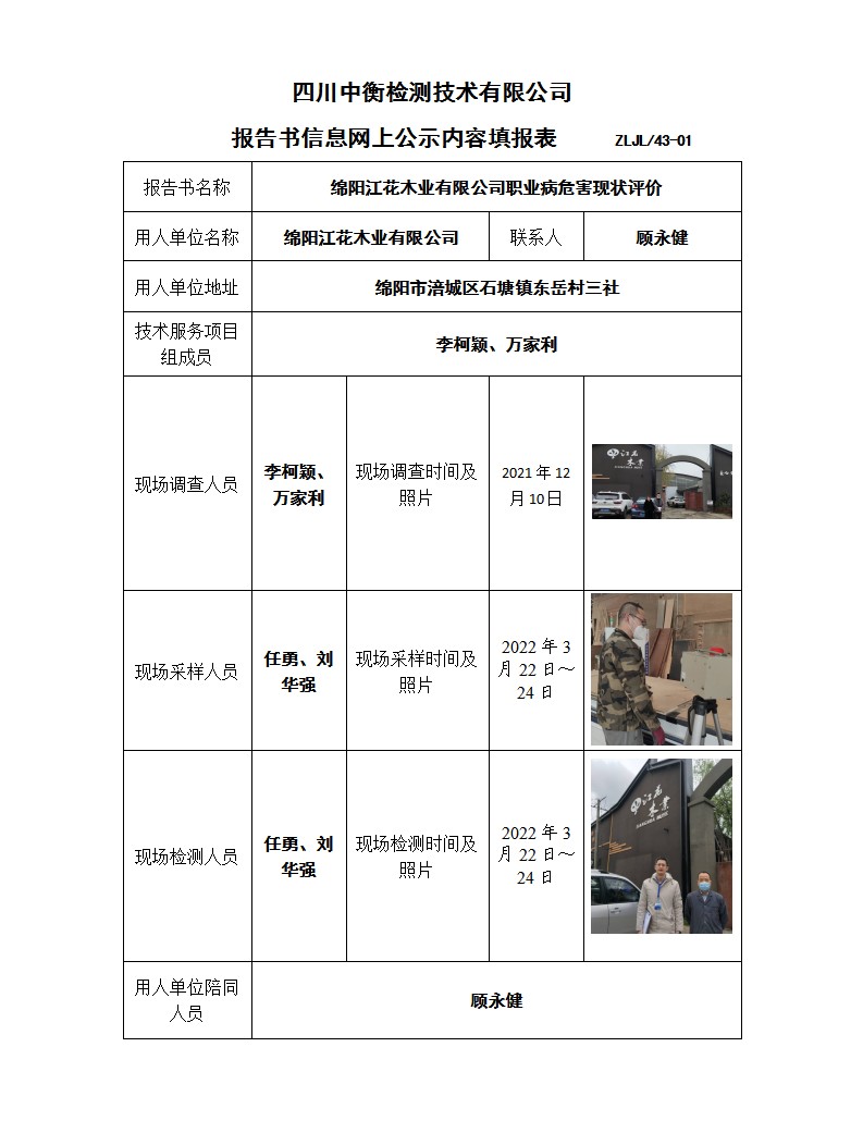 綿陽江花木業(yè)有限公司 職業(yè)病危害現(xiàn)狀評價報告書