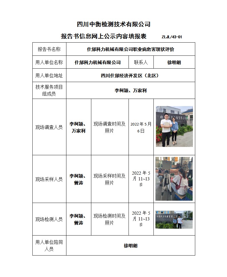 什邡科力機械有限公司 職業病危害現狀評價報告書