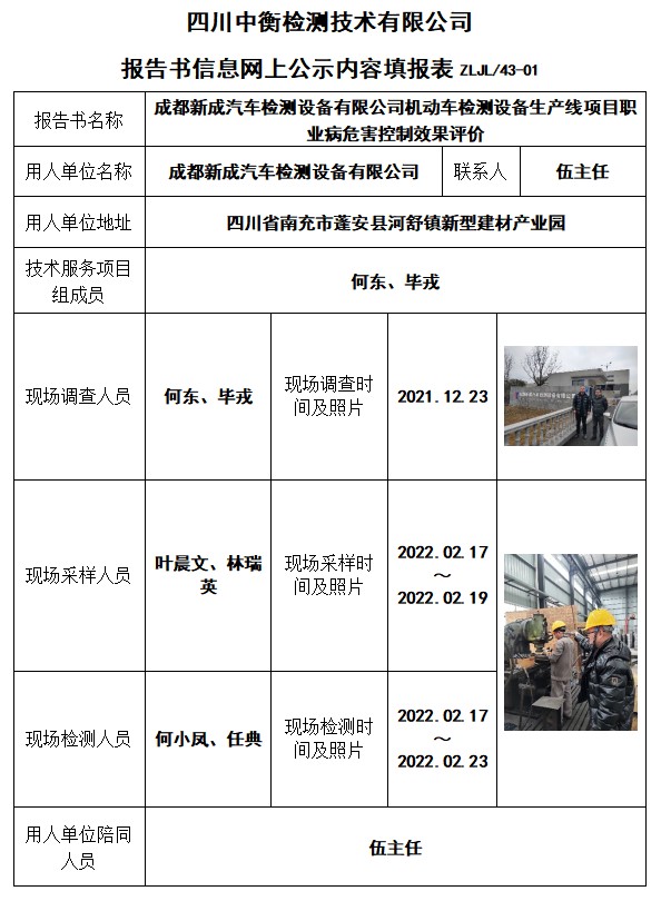 成都新成汽車檢測設備有限公司機動車檢測設備生產線項目控制效果評價
