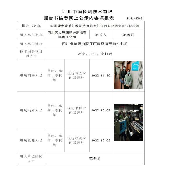 四川藍大玻璃纖維制造有限責任公司定期檢測