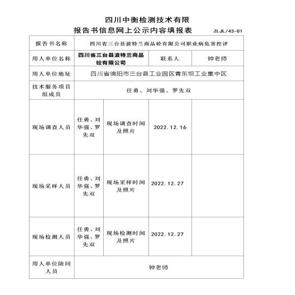 四川省三臺縣波特蘭商品砼有限公司定期檢測