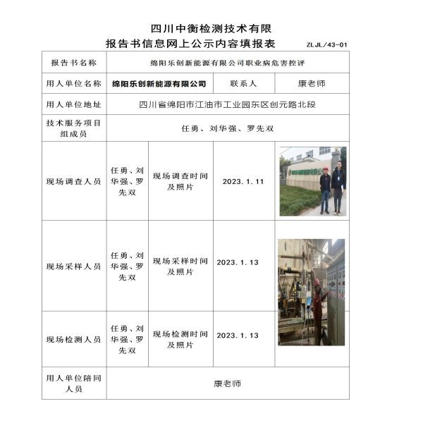 綿陽樂創新能源有限公司定期檢測