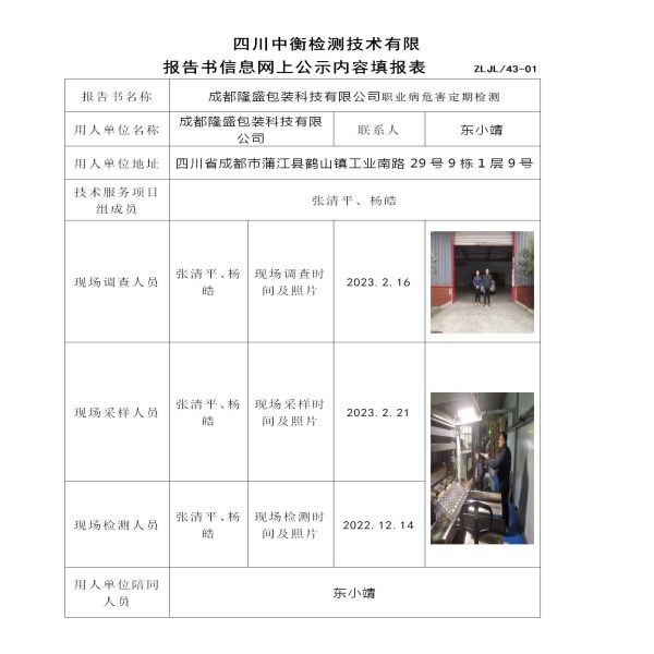 成都隆盛包裝科技有限公司定期檢測