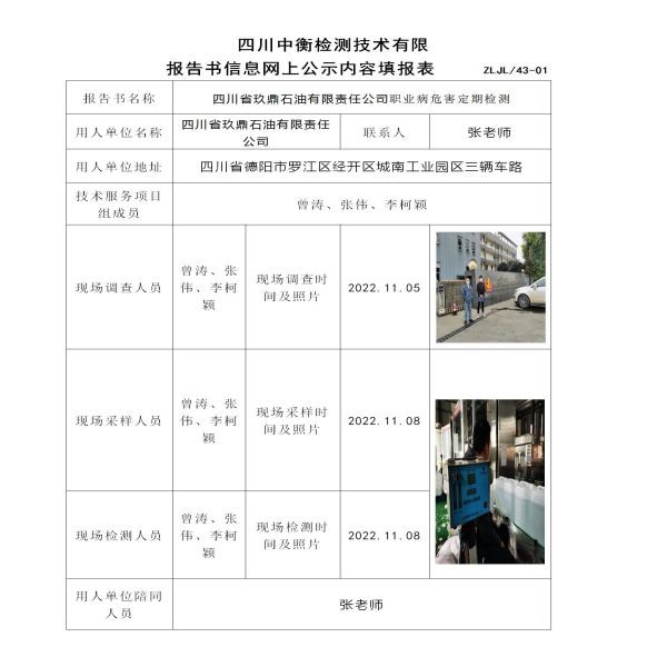 四川省玖鼎石油有限責任公司定期檢測