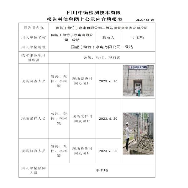 國能(綿竹)水電有限公司二級站職業病危害定期檢測