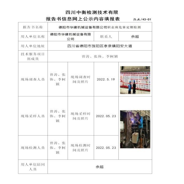 德陽市華建機(jī)械設(shè)備有限公司職業(yè)病危害定期檢測