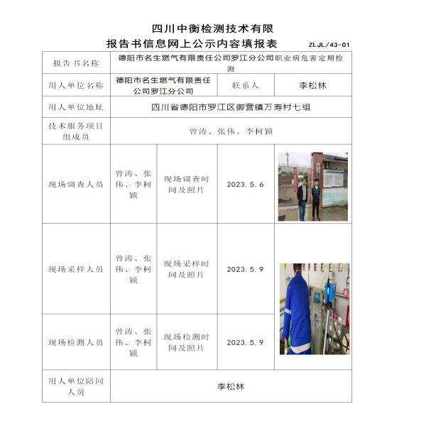 德陽市名生燃?xì)庥邢挢?zé)任公司羅江分公司定期檢測(cè)