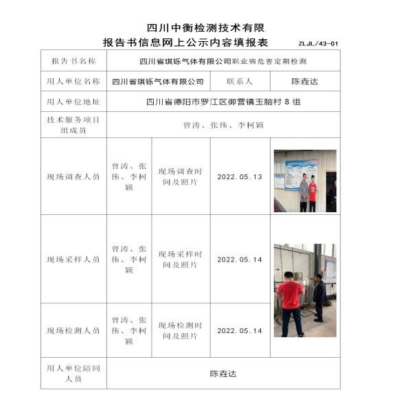 四川省琪鑠氣體有限公司職業(yè)病危害定期檢測