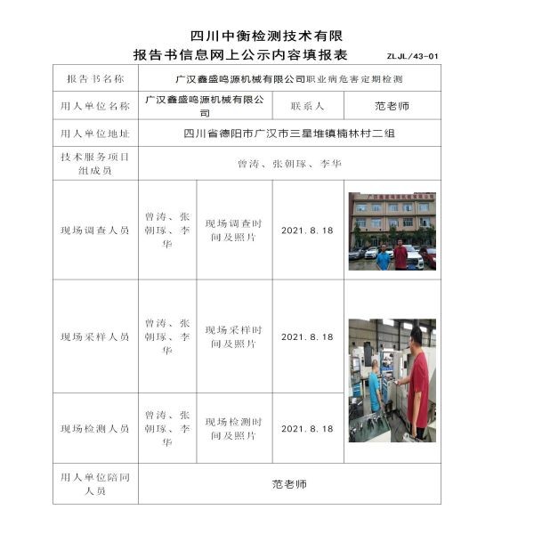 廣漢鑫盛鳴源機械有限公司定期檢測