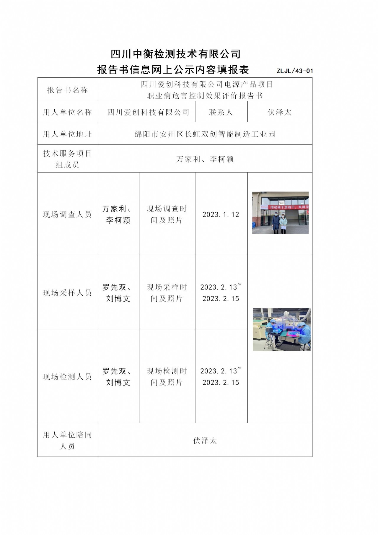 四川愛創科技有限公司電源產品項目 職業病危害控制效果評價