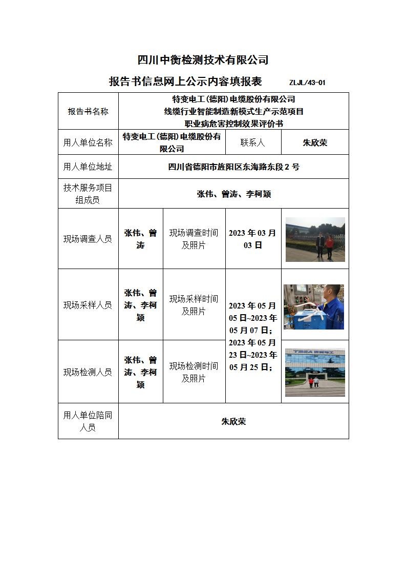特變電工(德陽)電纜股份有限公司“線纜行業(yè)智能制造新模式生產(chǎn)示范項目”職業(yè)病危害控制效果評價