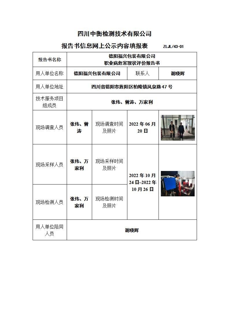德陽福興包裝有限公司職業病危害現狀評價