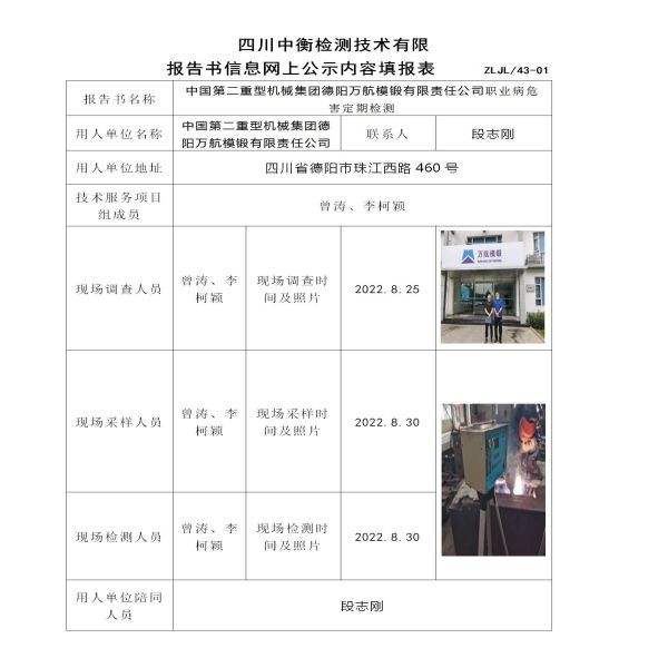 中國第二重型機械集團德陽萬航模鍛有限責任公司定期檢測