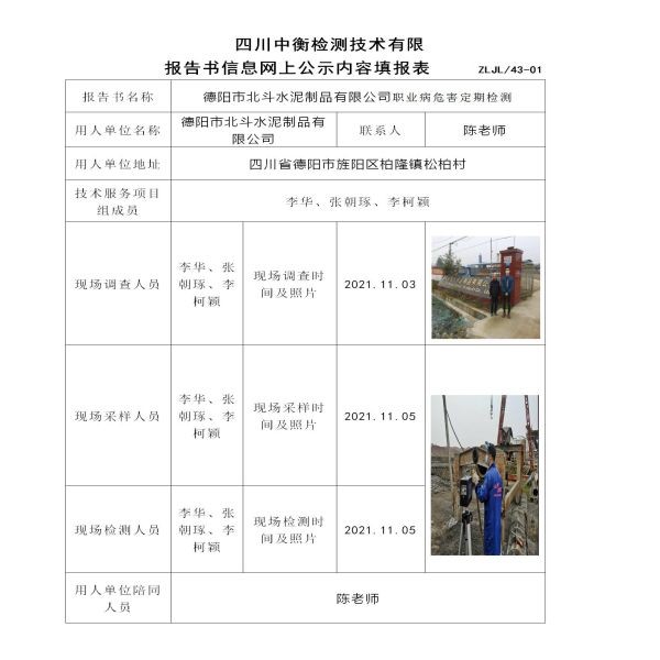 德陽市北斗水泥制品有限公司定期檢測