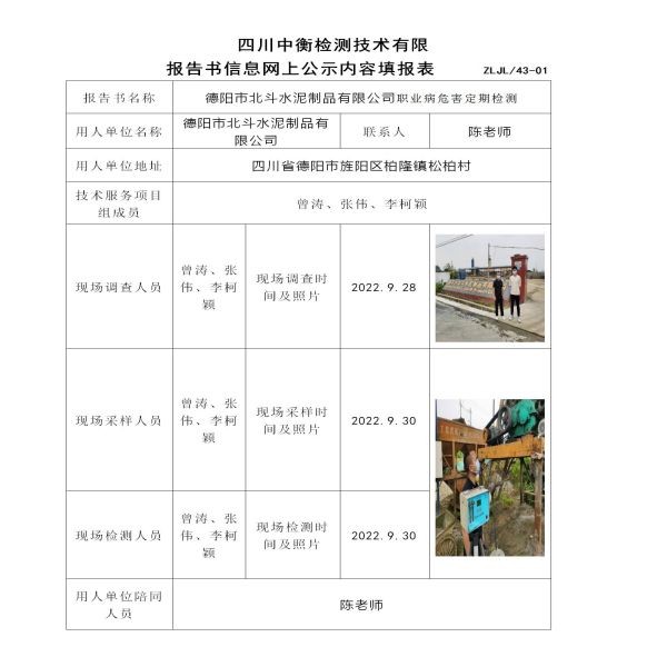 德陽市北斗水泥制品有限公司定期檢測
