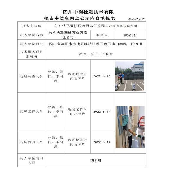 東方法馬通核泵有限責任公司定期檢測