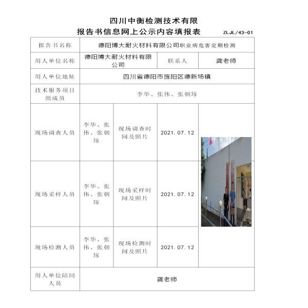 德陽博大耐火材料有限公司定期檢測