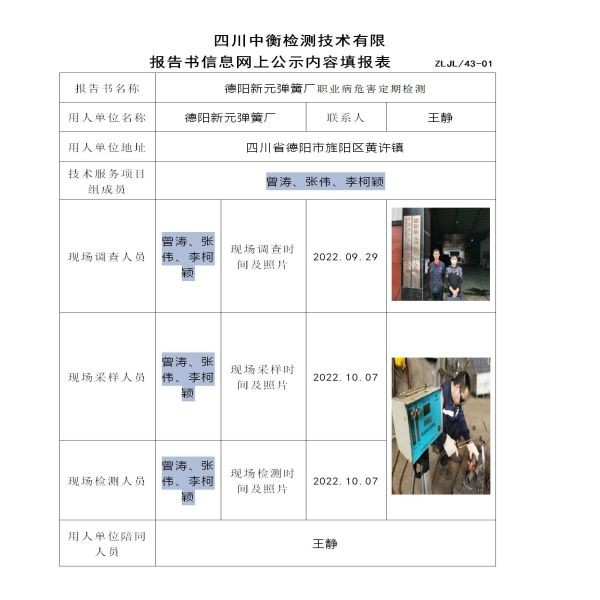 德陽新元彈簧廠定期檢測
