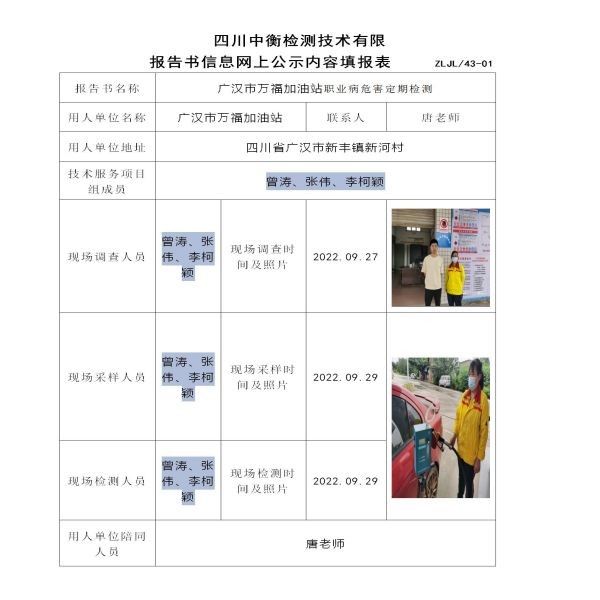廣漢市萬福加油站定期檢測