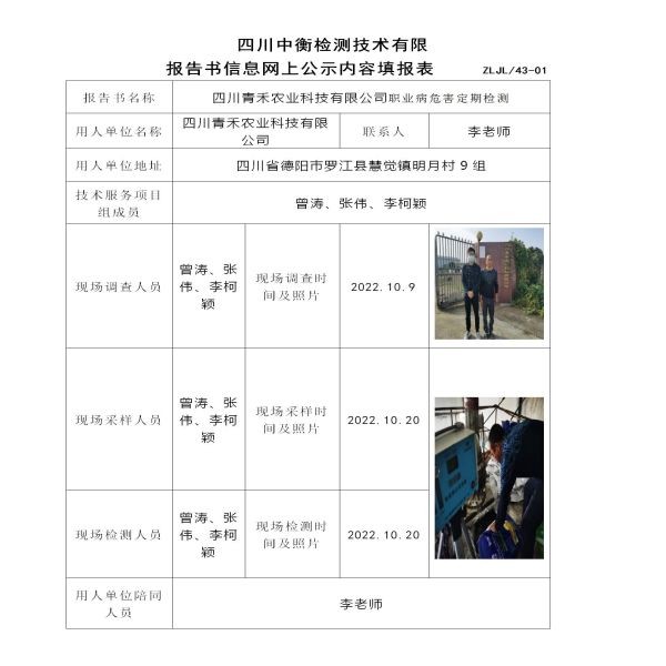 四川青禾農業科技有限公司定期檢測