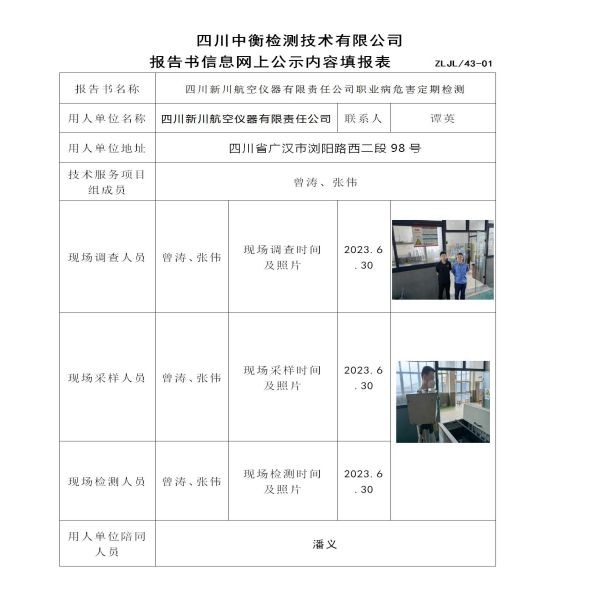 四川新川航空儀器有限責任公司職業病危害定期檢測