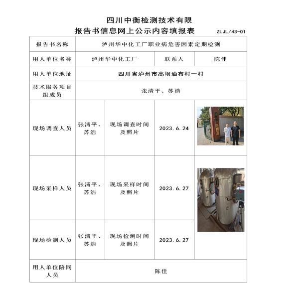 瀘州華中化工廠定期檢測
