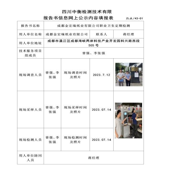 成都金宏瑞紙業有限公司定期檢測