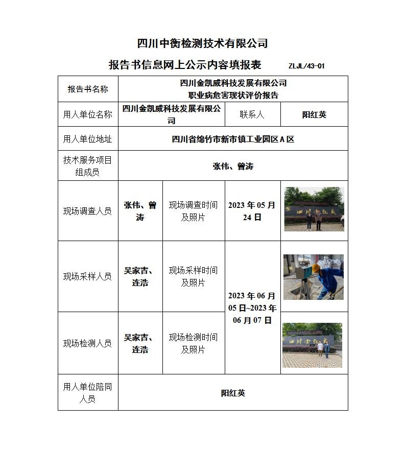 四川金凱威科技發展有限公司職業病危害現狀評價