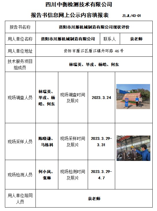 資陽市川雁機械制造有限公司現狀評價