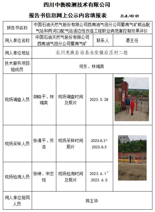 中國石油天然氣股份有限公司西南油氣田分公司蜀南氣礦威遠(yuǎn)配氣站和兩河口配氣站適應(yīng)性改造工程職業(yè)病危害控制效果評(píng)價(jià)