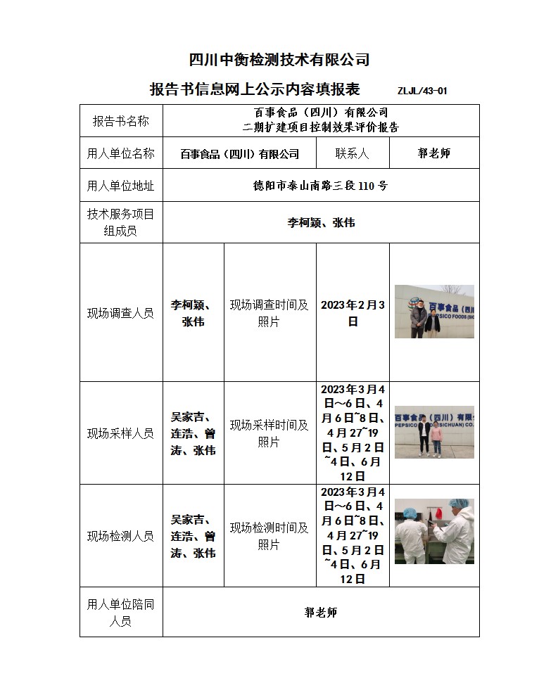 百事食品(四川)有限公司 二期擴(kuò)建項(xiàng)目 職業(yè)病危害控制效果評(píng)價(jià)